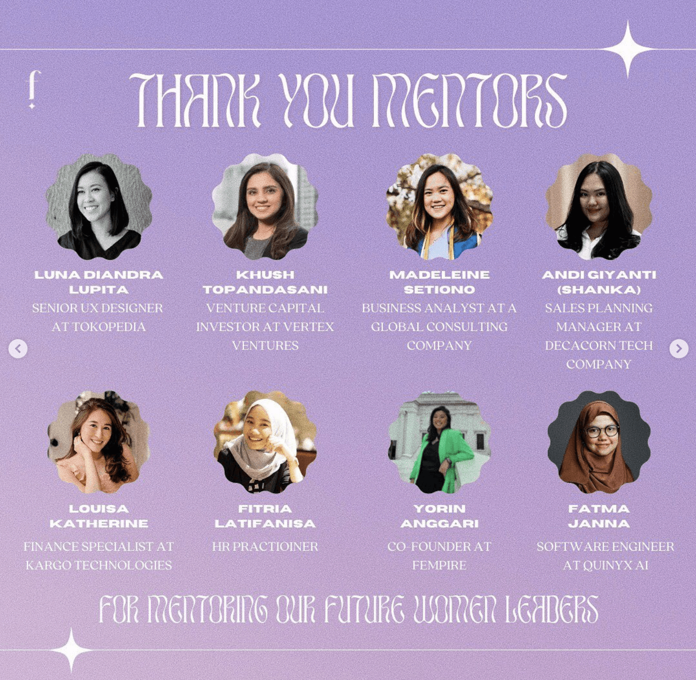 A 2-month 1-on-1 mentorship program from Fempire —a female empowering community — with dedicated mentors expert in specific fields where I provided mentorship on UX Design.