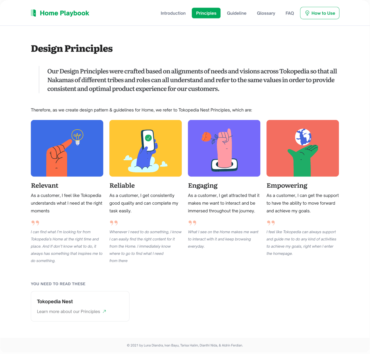 Creating an encompassing guideline for designers and other stakeholders to refer to when creating products with and for the homepage of one fo Indonesia’s largest e-commerce platforms.